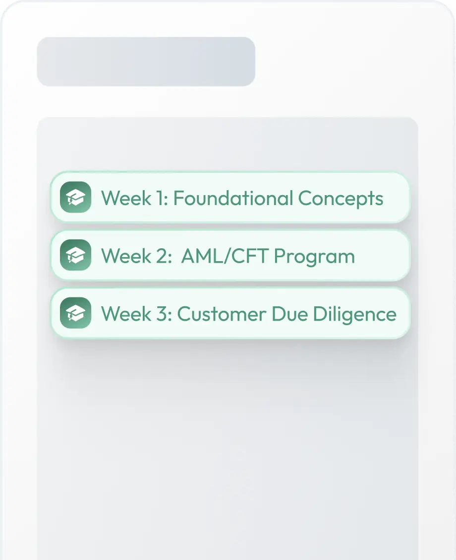 Learn directly from leading AML/CFT experts in live weekly group trainings.